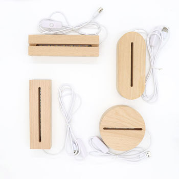 Directamente de fábrica Led ilusión acrílico Rectangular redondo ovalado personalizado madera luz de noche Base de lámpara para acrílico 3D luz de noche
