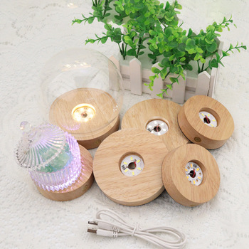 Base de lámpara de soporte de pantalla LED de 5V moderno con control de sensor de adorno ABS blanco cálido soporte de madera giratorio para dormitorio